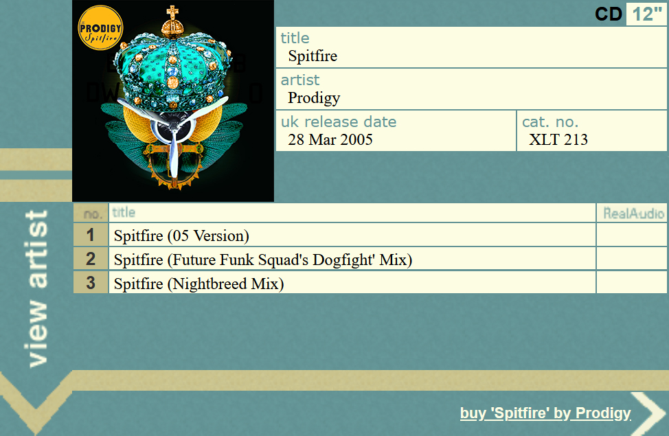 For the first time in The Prodigy’s history, there was no separate shortened radio version (aka ‘Radio Edit’) for the single. The reason was simple: ‘Spitfire (05 Version)’ was originally conceived as a short track. Even before the release, Howlett wrote that the track sounded noticeably better in its short form: